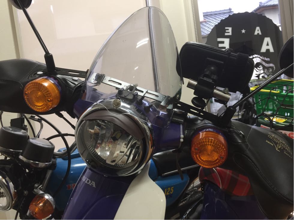 マイカブは自作風防を付けております。