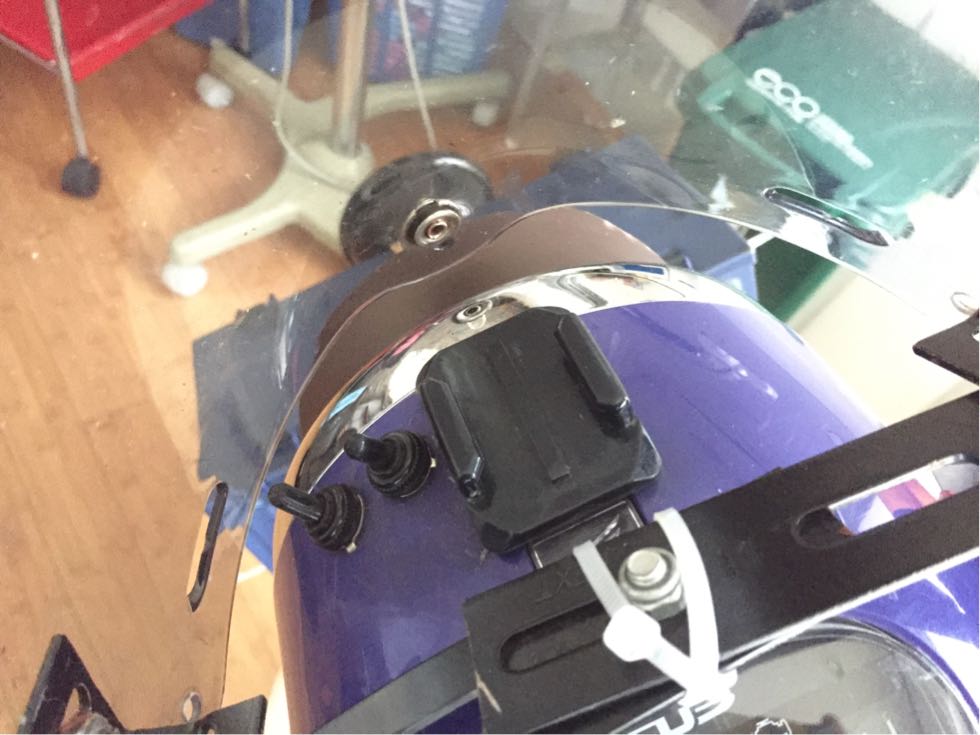風よけではなくETCとGoProを取り付ける際のマウント的な役割をしているのですが、