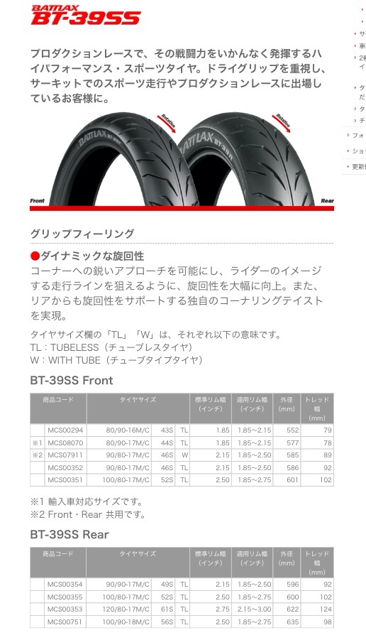 一緒に私のカブのタイヤも発注しますよ、勿論BT39SSです。