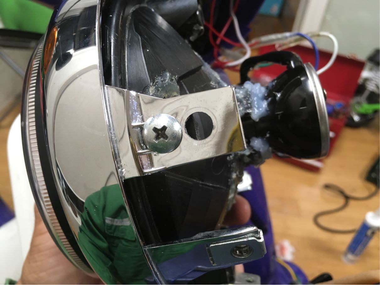 今回ハイビームを以前より下向きにしたのでハロゲン球で上方を照らします。