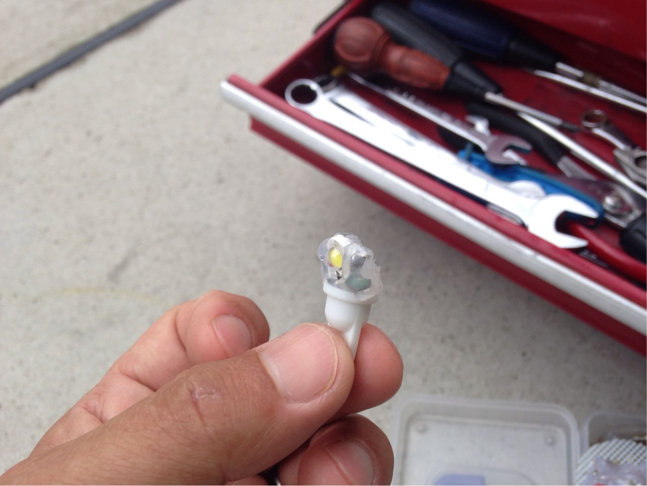 純正球(10W)と自作LED1Wダブル。