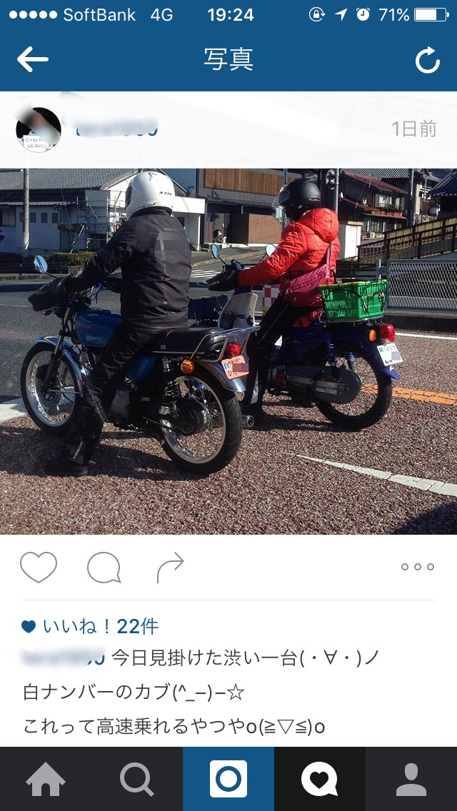この人CBを見つけて付いて来て軽二輪カブに気付いて写真を撮ったらしい、