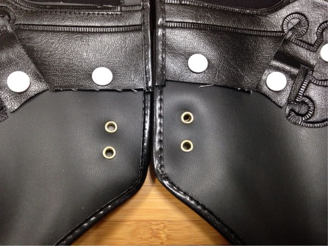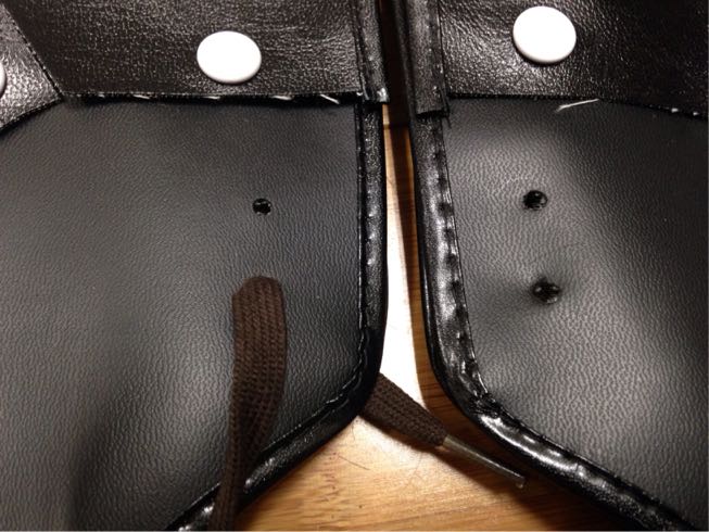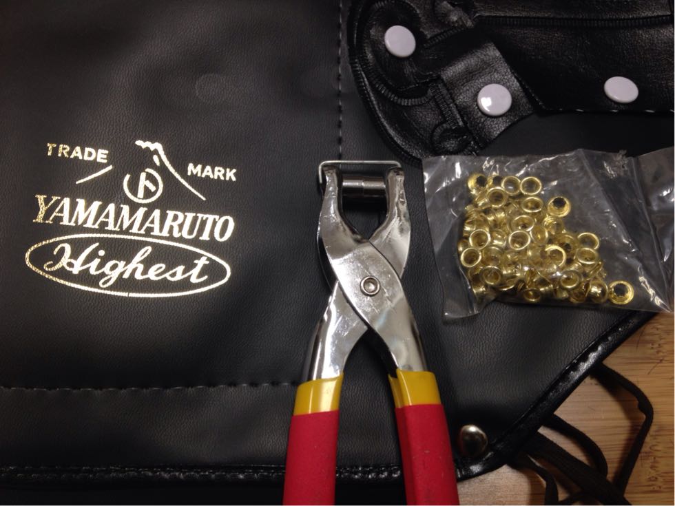 この紐を通す穴が裂けやすいから補強します。