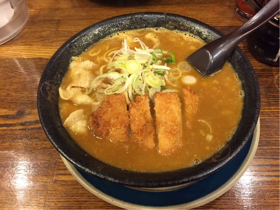 カツカレーラーメンを食べ身体を暖める、