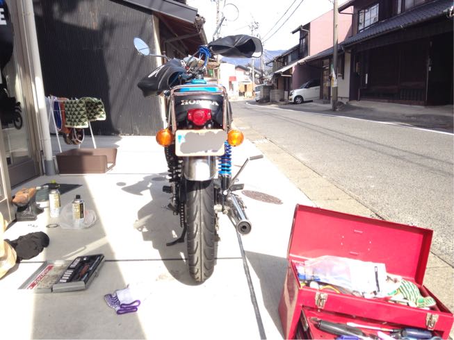 カミさんにCBに乗ってもらいエイプテール自作LEDバルブの視認性をチェック。