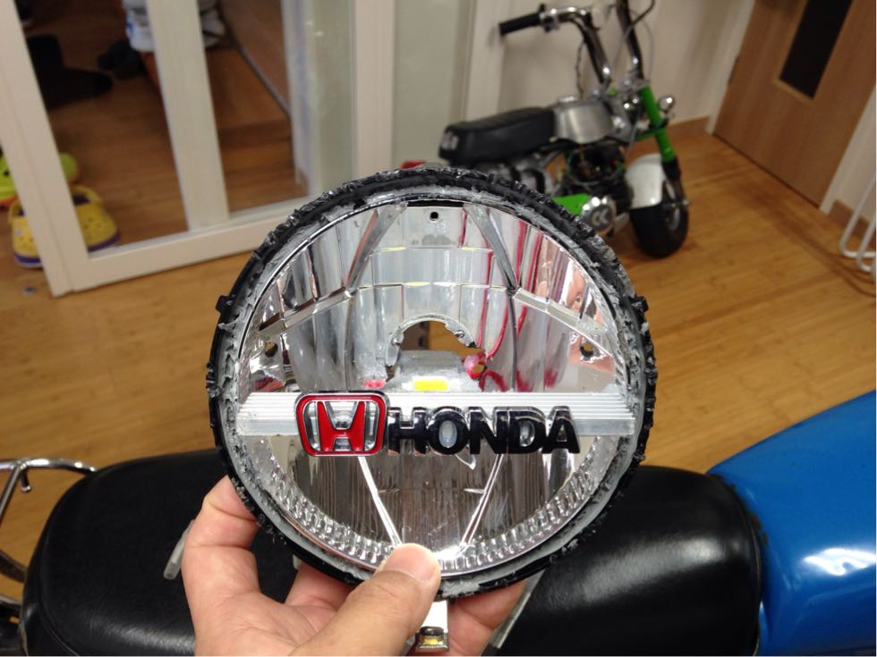 サブライトを使って満足な明るさを得ていたときもありましたが、なるべくシンプルにノーマルヘッドライト内に自作品を押し込んでみました。
