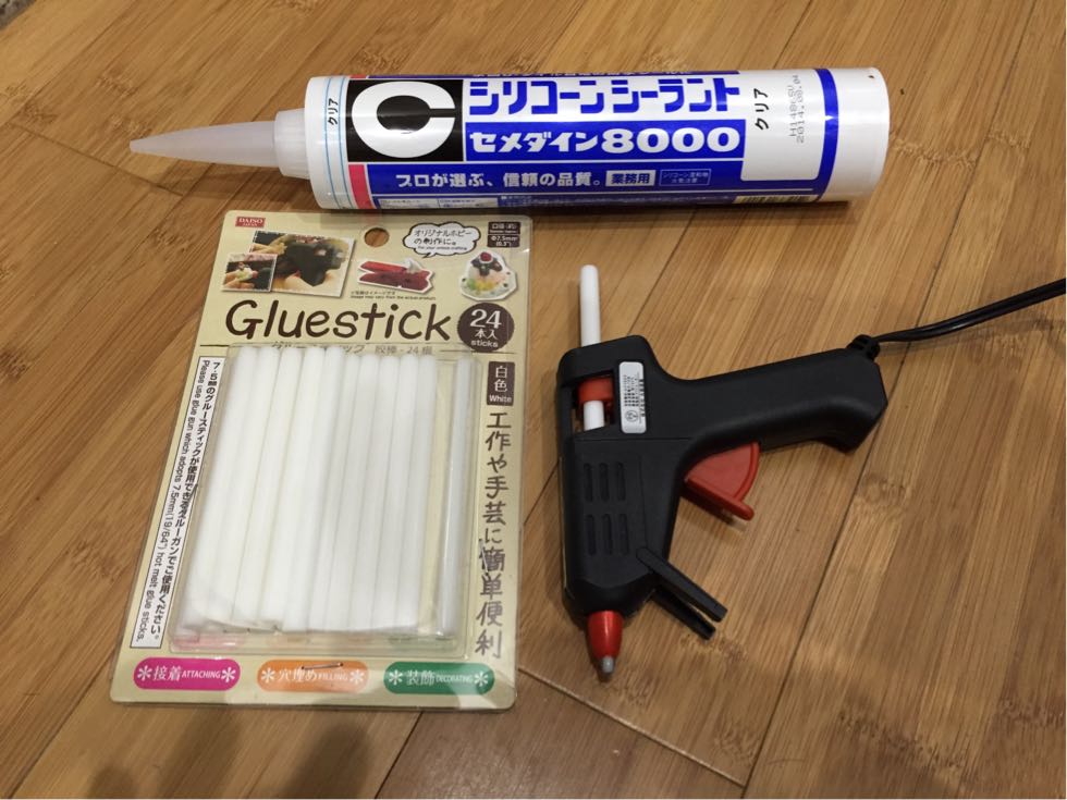 物を貼り付けたり固定したいときはホットボンドで仮止め、その後シーラントで本格固定、