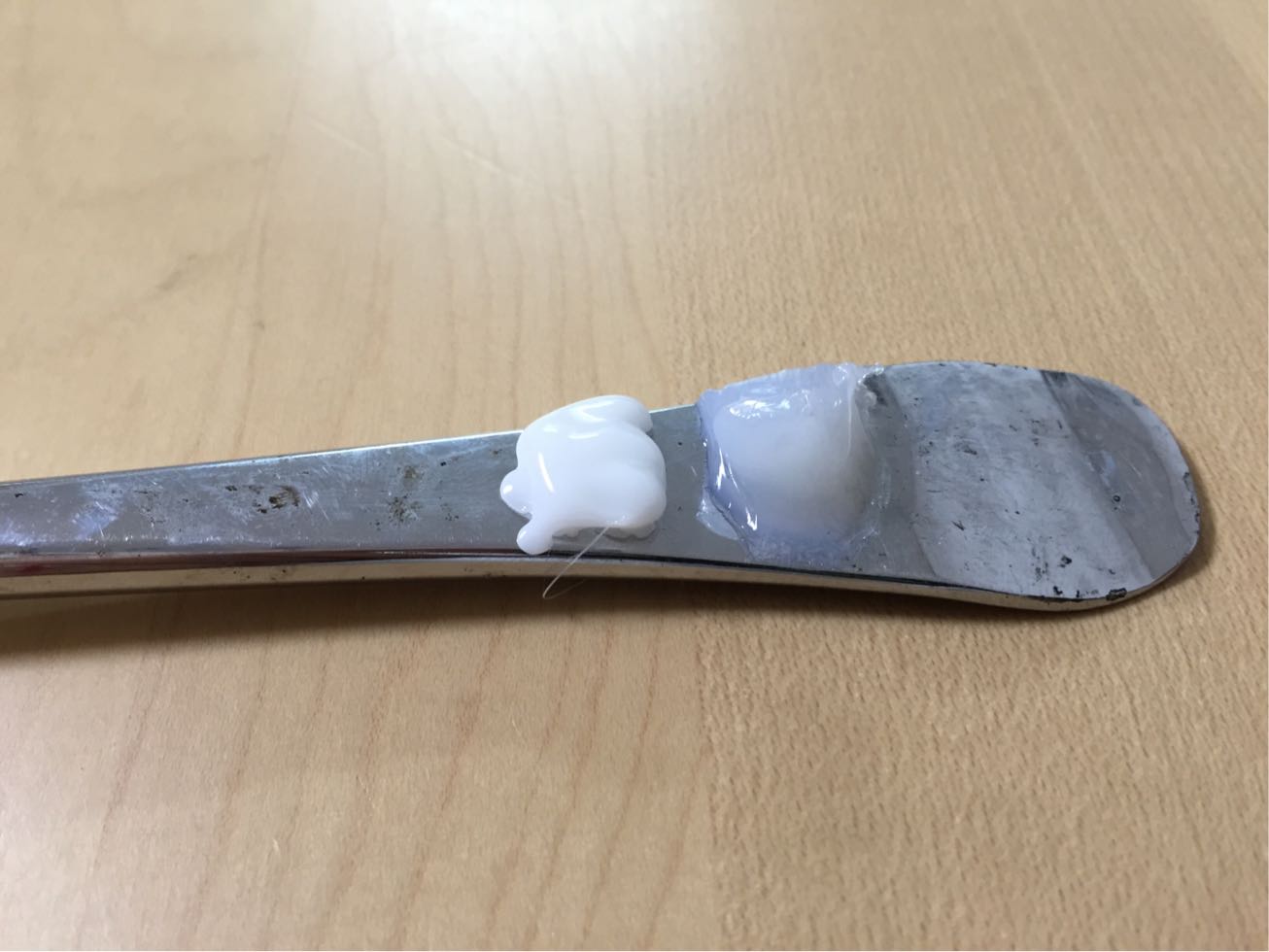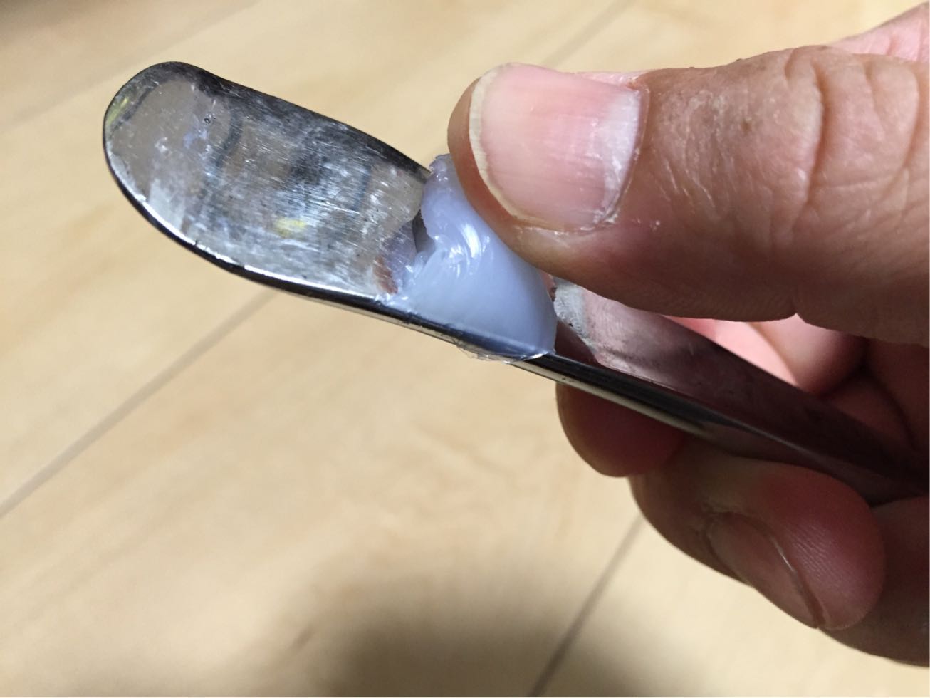 簡単な実験、タイヤレバーに両者を垂らします。