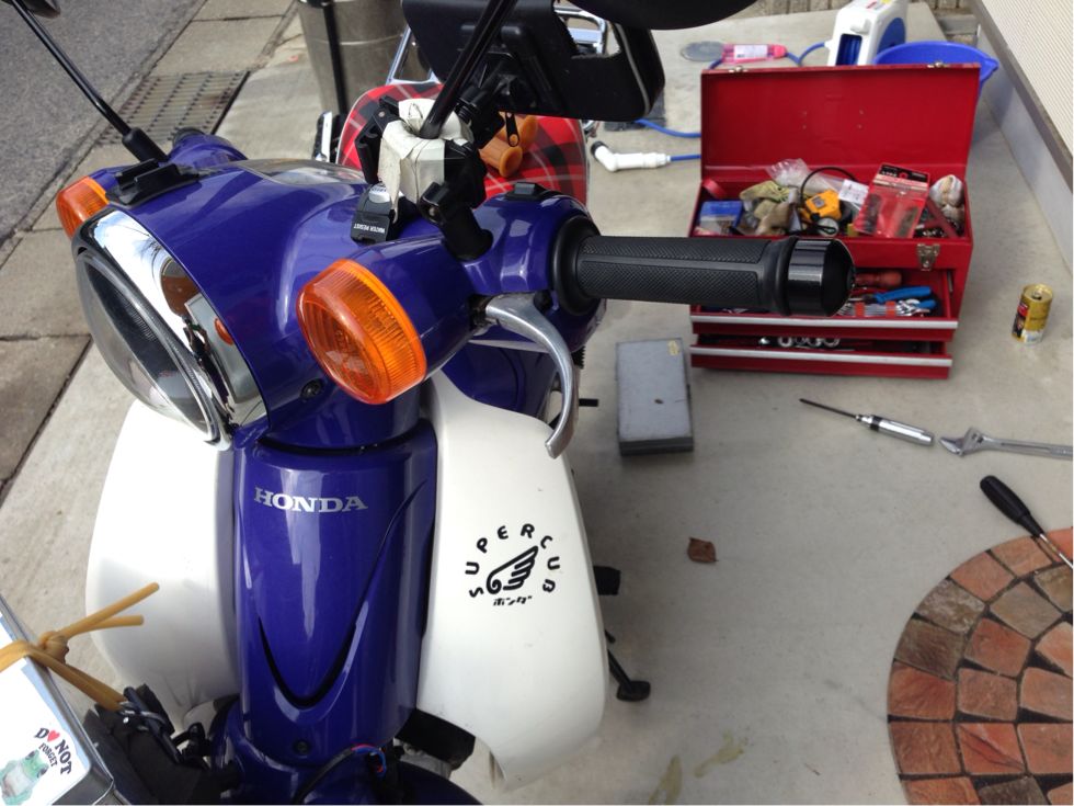 ちなみにカブ110丸目ですが、一般的な左右の太さの違うグリップがそのまま使えます、