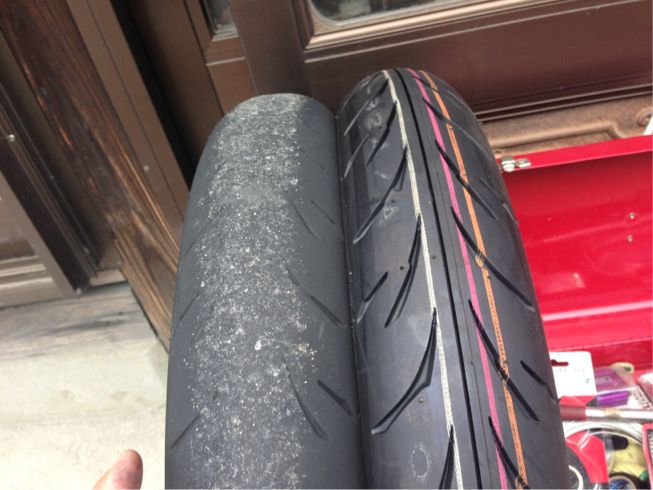 タイヤの入荷が遅かったんでツルツルですね(汗)