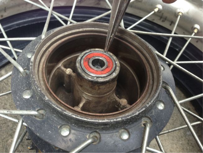 CRFはベアリングが緩かったんでカシメておきました、