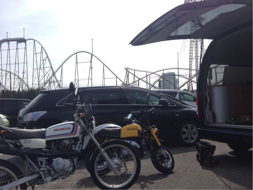 富士急の駐車場でバイクを下ろす姿は少し恥ずかしい(汗)