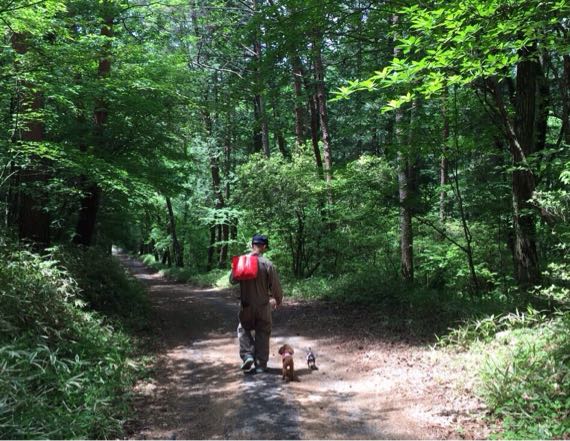 ノーリードでもピッタリと付いてきて可愛いものです。