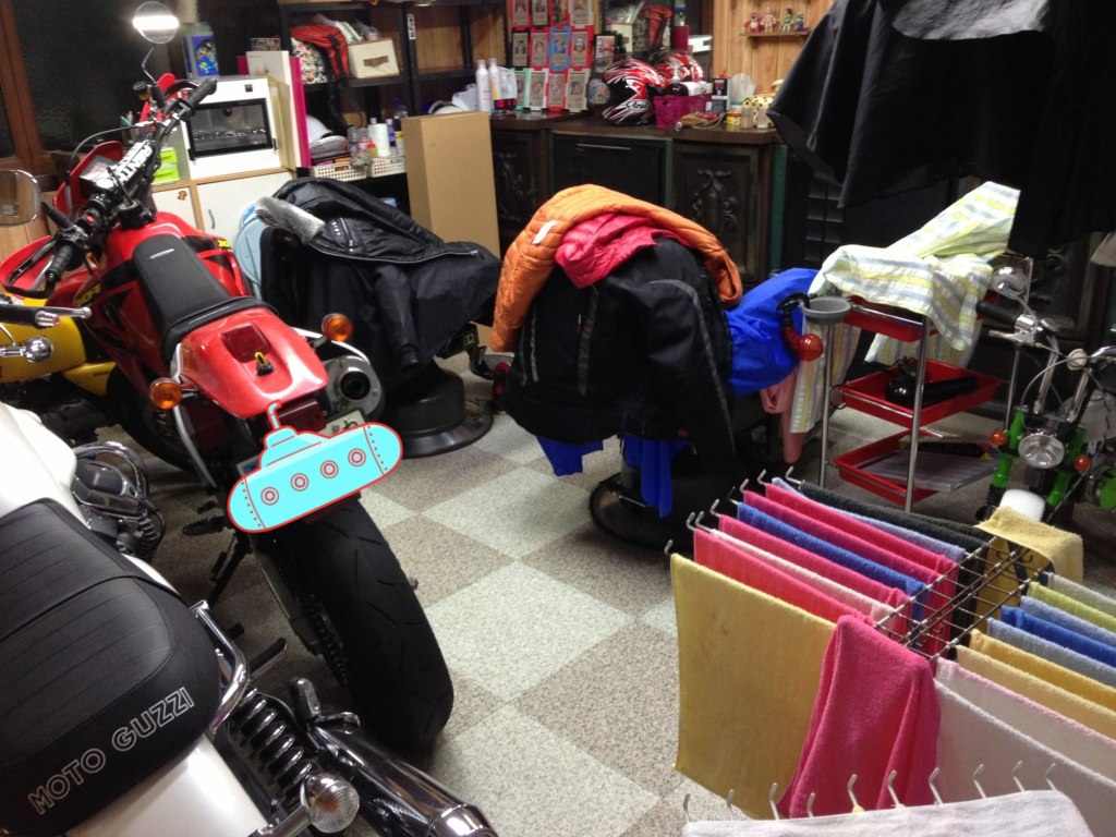 明日も走るんで、車庫ではなく家の中にしまいました。