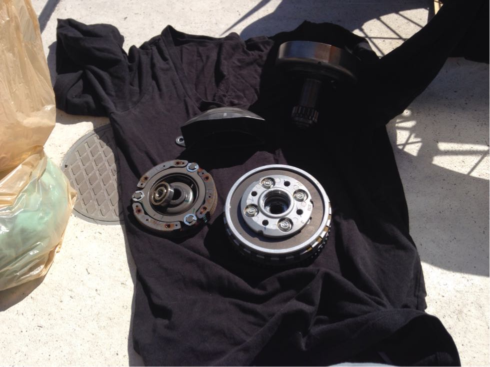クラッチプレートとクラッチディスクで2000円ちょい、安いね〜。