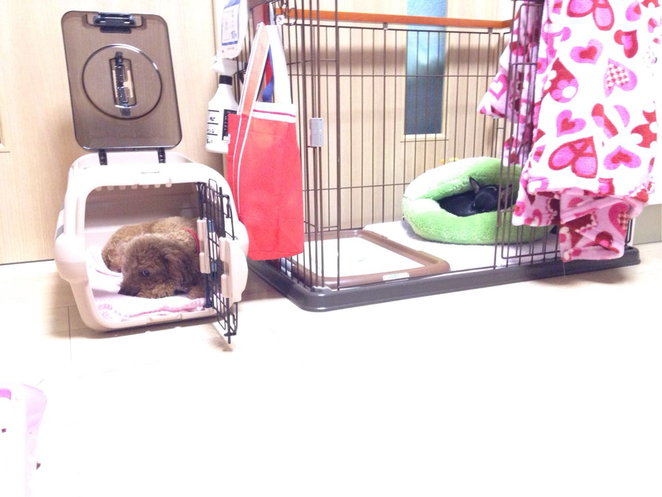 悩んだ挙句ゲージの中にクレートとオシッコシートを設置、