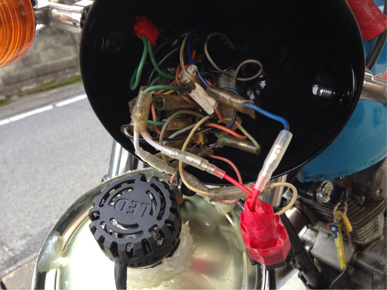このぐちゃぐちゃから探すのか、カブもCBも無理やりLEDベッドライトをつけてるんでスペース的に厳しいなあ(汗)