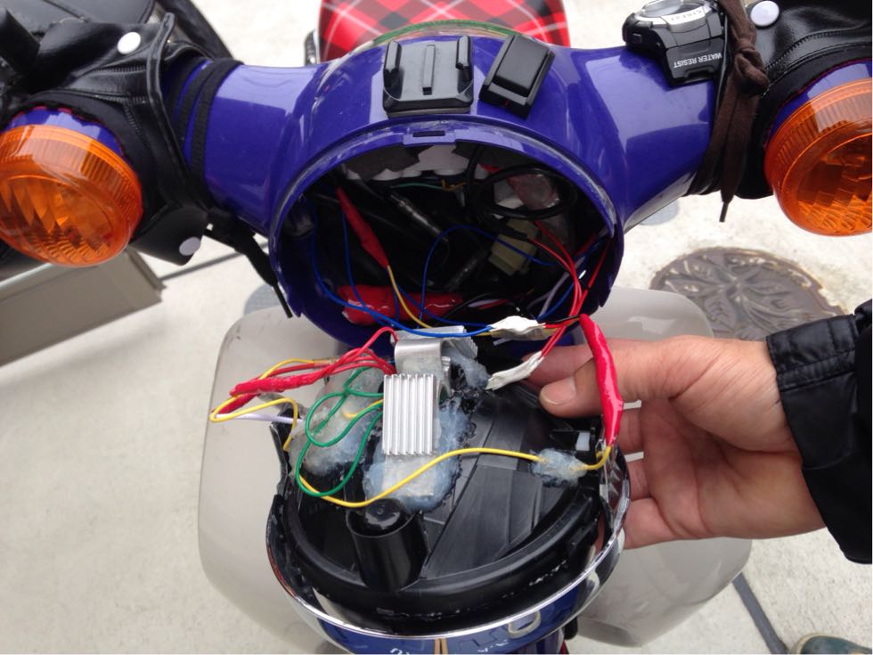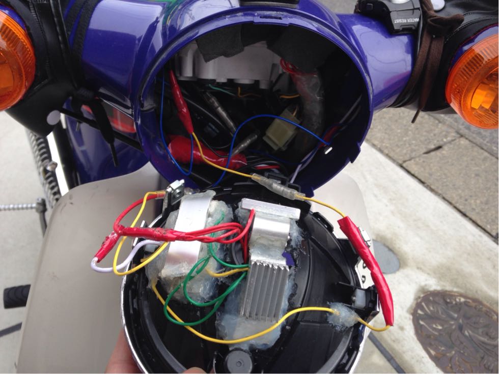 これをしないと左右のウインカーが繋がっちゃいます、独立して光らせる事が出来なくなり常にハザードになっちゃいます、