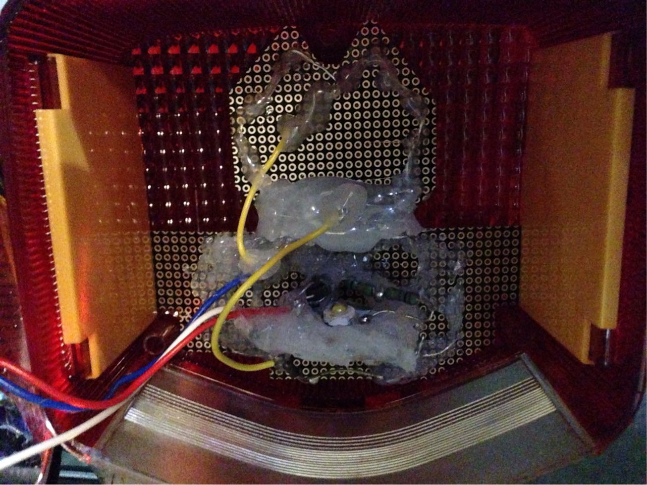 今回LEDを7個追加、3個直列側は抵抗480Ω、4個直列側は340Ωで光らせてます。
