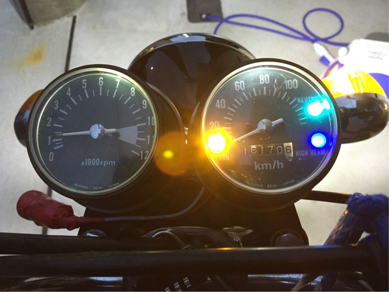 ウインカー、ニュートラル、ハイビームは5mmLEDで自作。