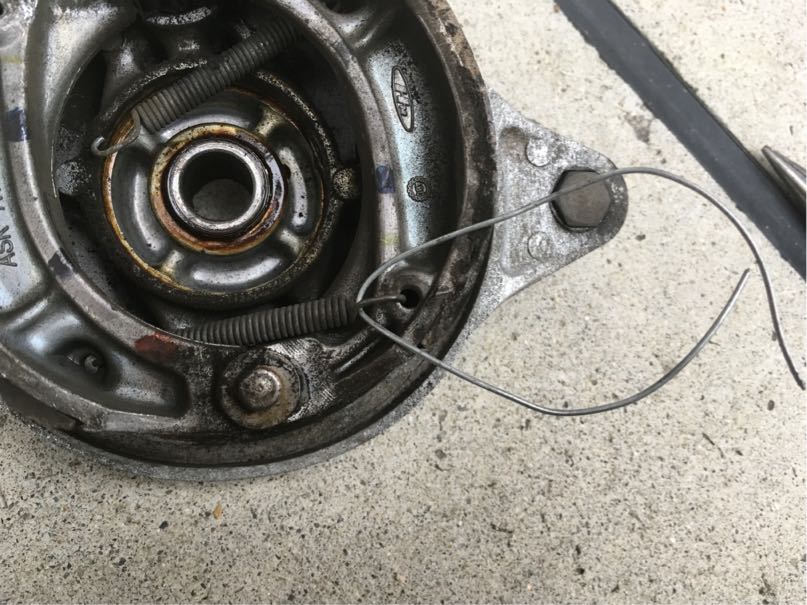外し難いスプリングは針金で簡単に外せます、引っ掛けて引っ張るだけ。