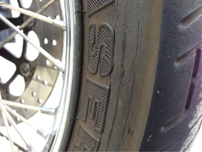 カチカチにひび割れてるタイヤを交換。