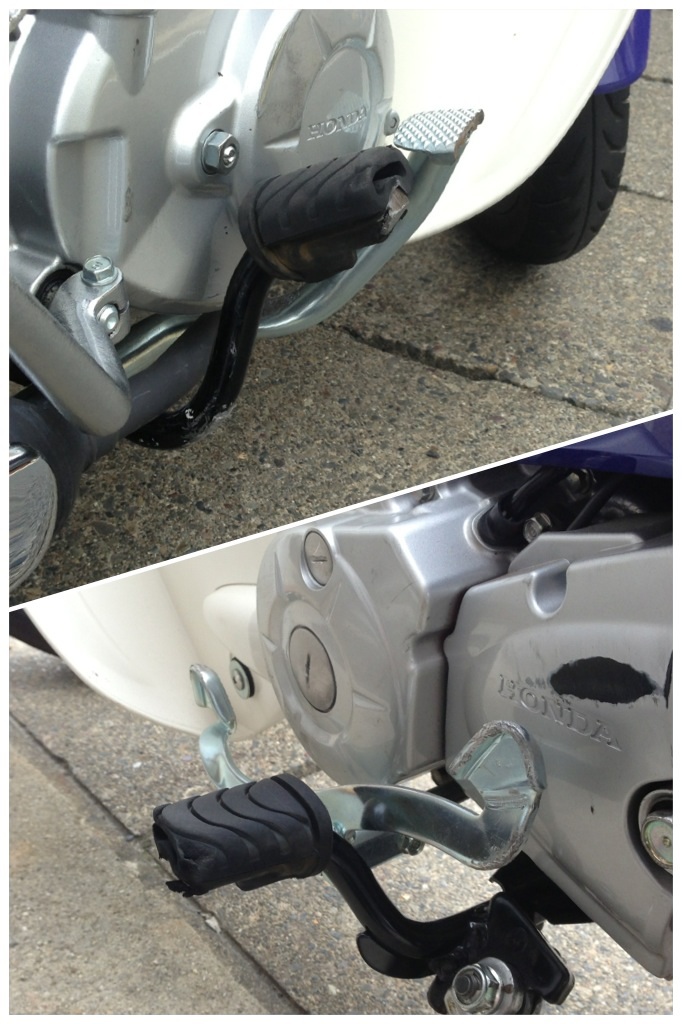 私のチェンジペダル加工ですが爪先側かかと側共に捻じって高くなるようにしています、