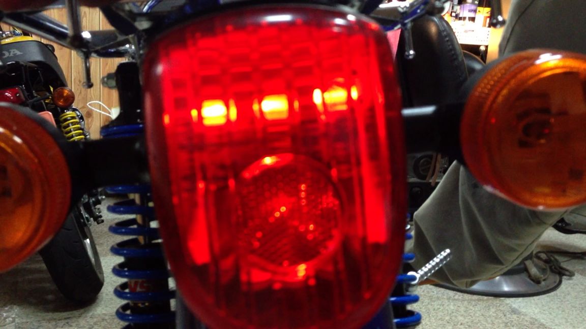 今回初の試みとして抵抗の数値を変えてストップとブレーキの明るさを変えています。