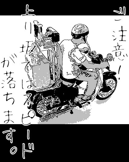 >自分のカブは非力なので、上り坂では後続の車にいつも”申し訳ないな〜”と思いながら走っております。こんなステッカーがあれば箱に貼っておけば気分的に楽でいいですね!(^^)