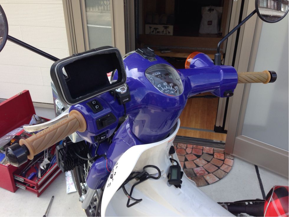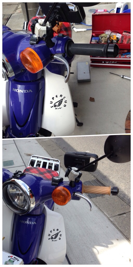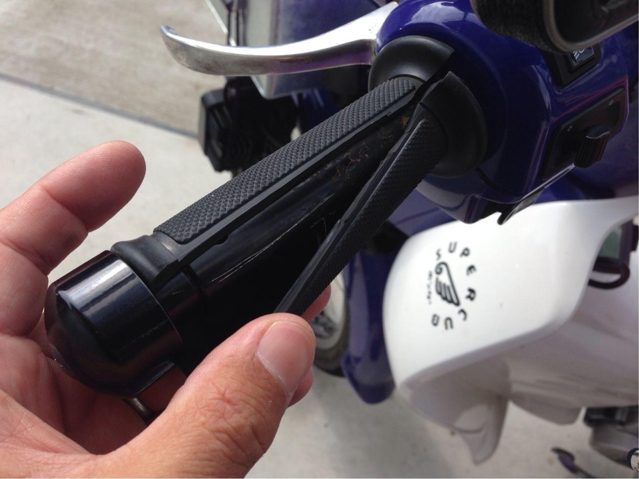 ちなみにカブ110丸目ですが、一般的な左右の太さの違うグリップがそのまま使えます、