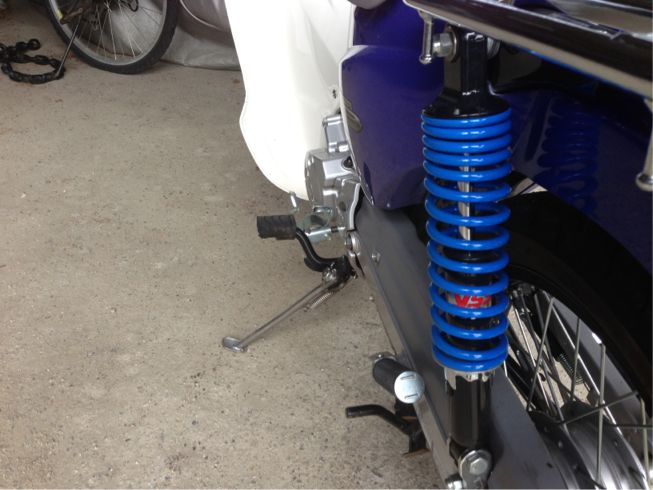 私のカブは車高が上がってるんでセンタースタンドは浮いて板を咬ませないと使えません(汗)