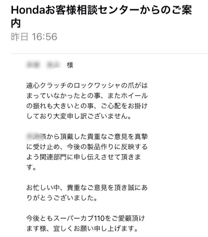 ホンダにはメールを送りました。