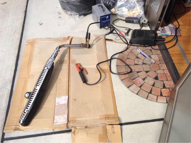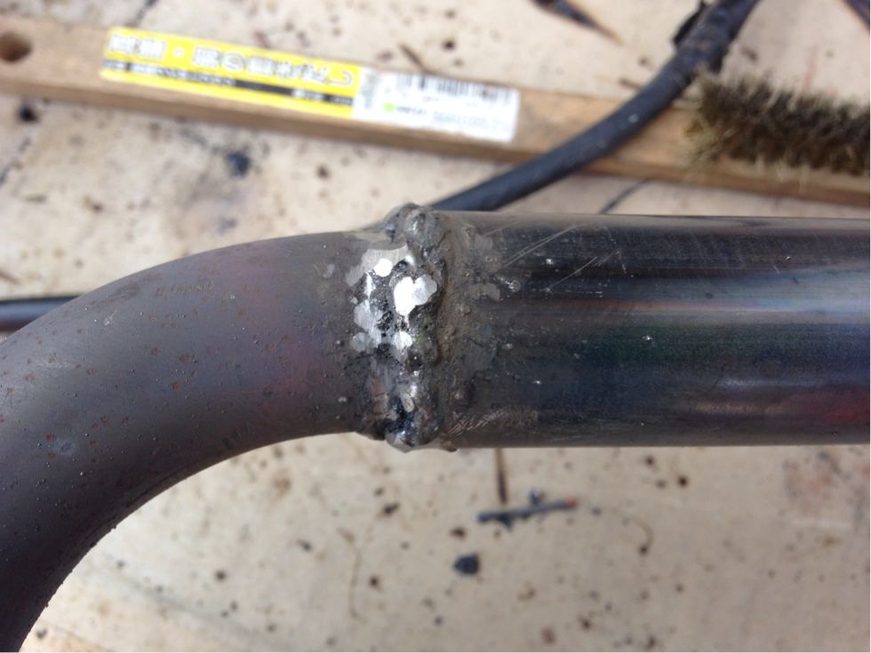 私がマフラーをベストポジションに固定し仲間に点付けしてもらいました。