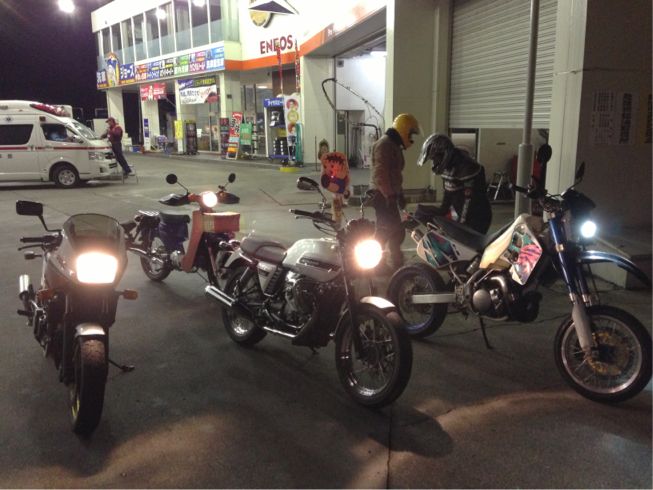 途中GUZZIと乗り換えましたが寒くてやってられない、カブ最高ですね。