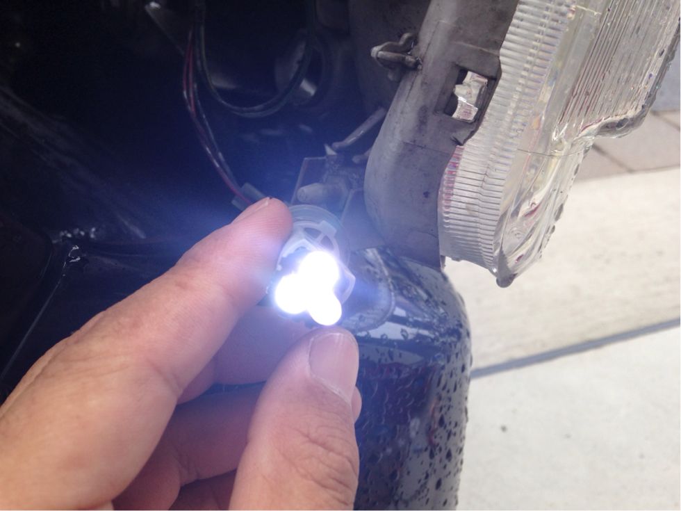やはりLEDは白く純正は黄色、安物LED3個ですが思ったより明るく結果オーライ。