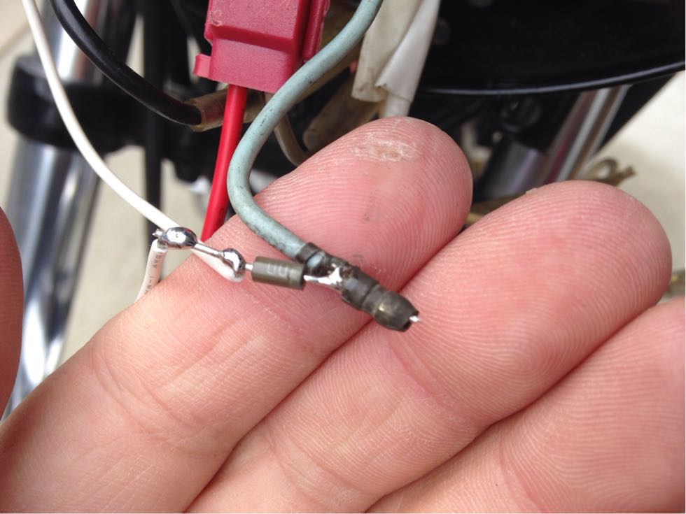 此方も左右のウインカーに整流ダイオードを噛ませ灰色の配線と繋ぎます。