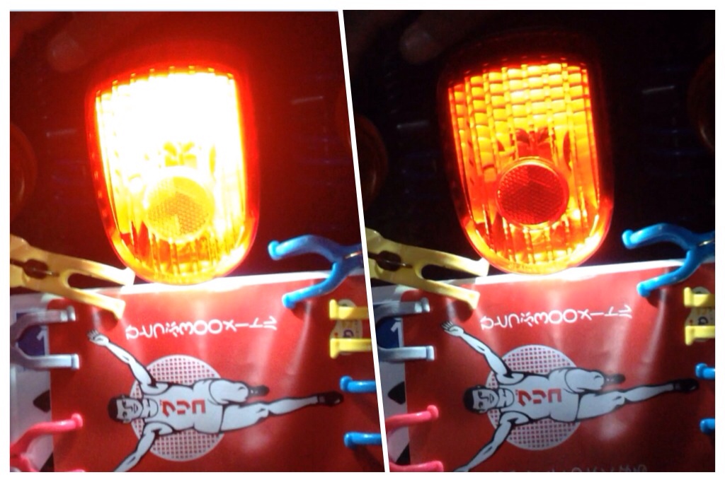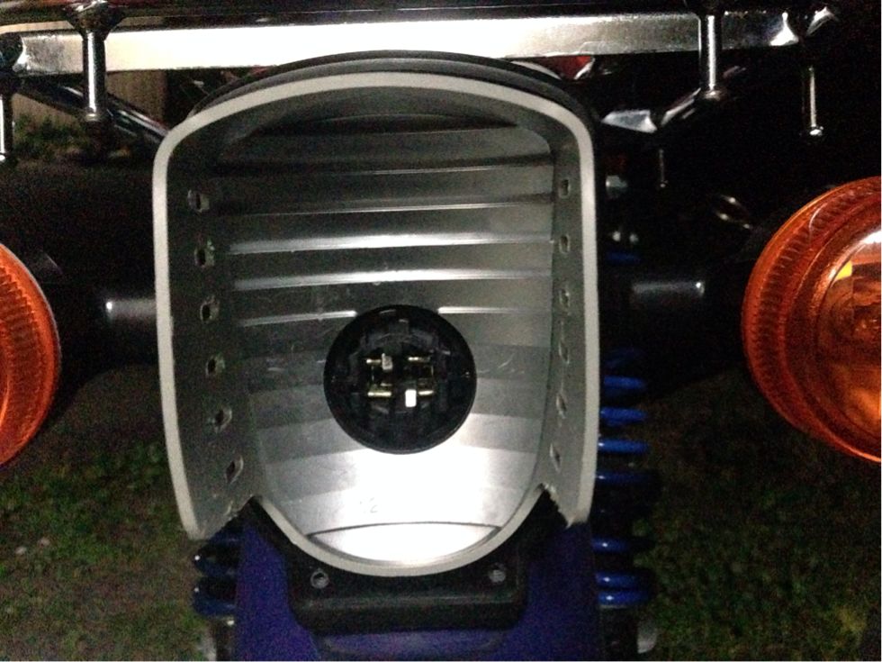 カブ110丸目テールは中がこんな感じにリフレクター仕様、こいつを利用しましょう。