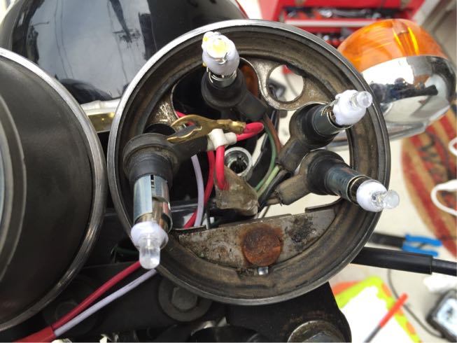 ウインカー、ニュートラル、ハイビームは5mmLEDで自作。